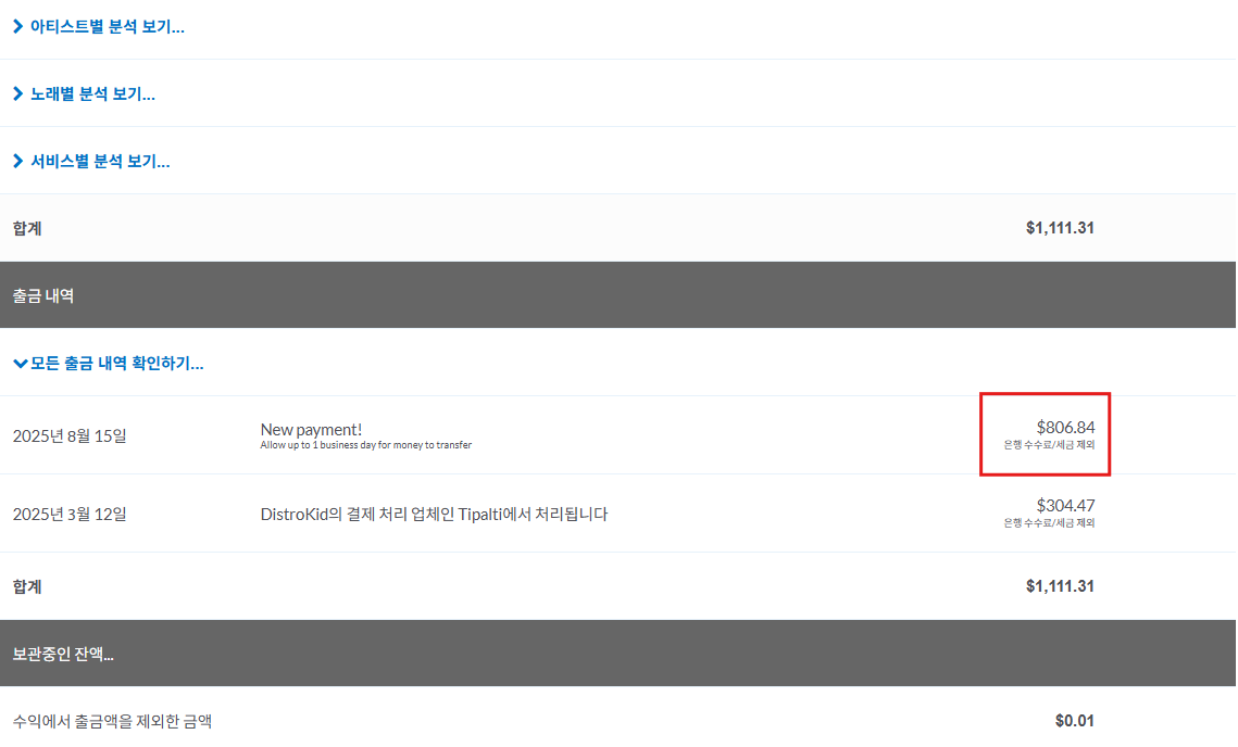 안녕하세요 여러분 디스트로키드 $567달러 수익이 생겼답니다~! 지난번 $806달러 출금을 작년 8월에 했었는데 어제 확인해보니 $567달러 정도 수입이 생겨 출금을 신청했어요. 이로써 총 합계 금액은 $1678달러를 돌파하게 되었어요~!! 최근에는 환율이 높아져서 원화로 환산하면 대략 84만원 정도에요~! 엄청나게 큰 돈은 아니지만 지난 번에 이어 꾸준히 수익이 발생하고 있어요. 작년 3월에 처음으로 300달러의 수익이 생겨서 첫 인출을 했었는데현재 약 1년정도 된 시점에 총 수익이 1678달러 정도이니원화로 환산한다면 249만원 정도 수익이 생겼다고 볼 수 있어요.제가 설정한 목표는 일년에 250만원 미만인데 어떻게 이렇게 맞아 떨어지는지 참 신기하네요. 출금방법은 간단해요 Bank 메뉴에서 수익..