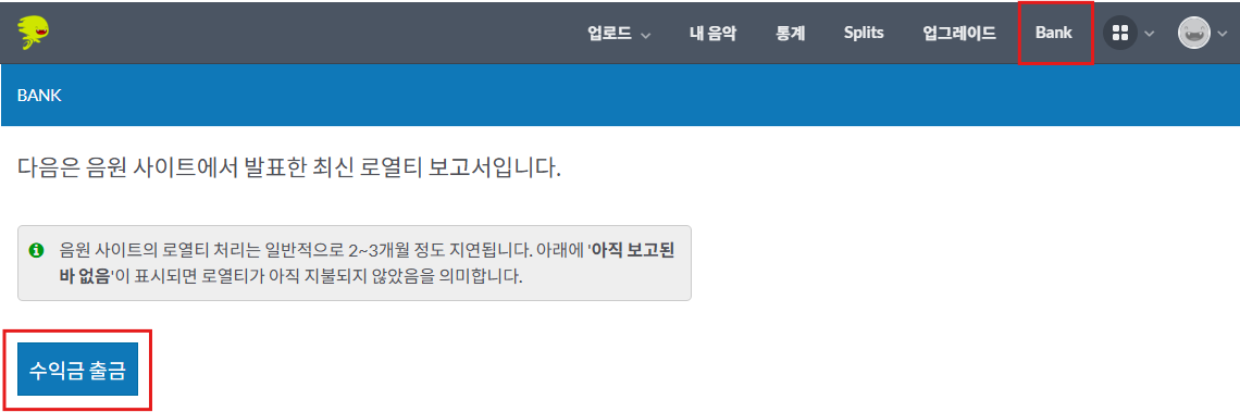 출금방법은 간단해요 Bank 메뉴에서 수익금 출금 클릭