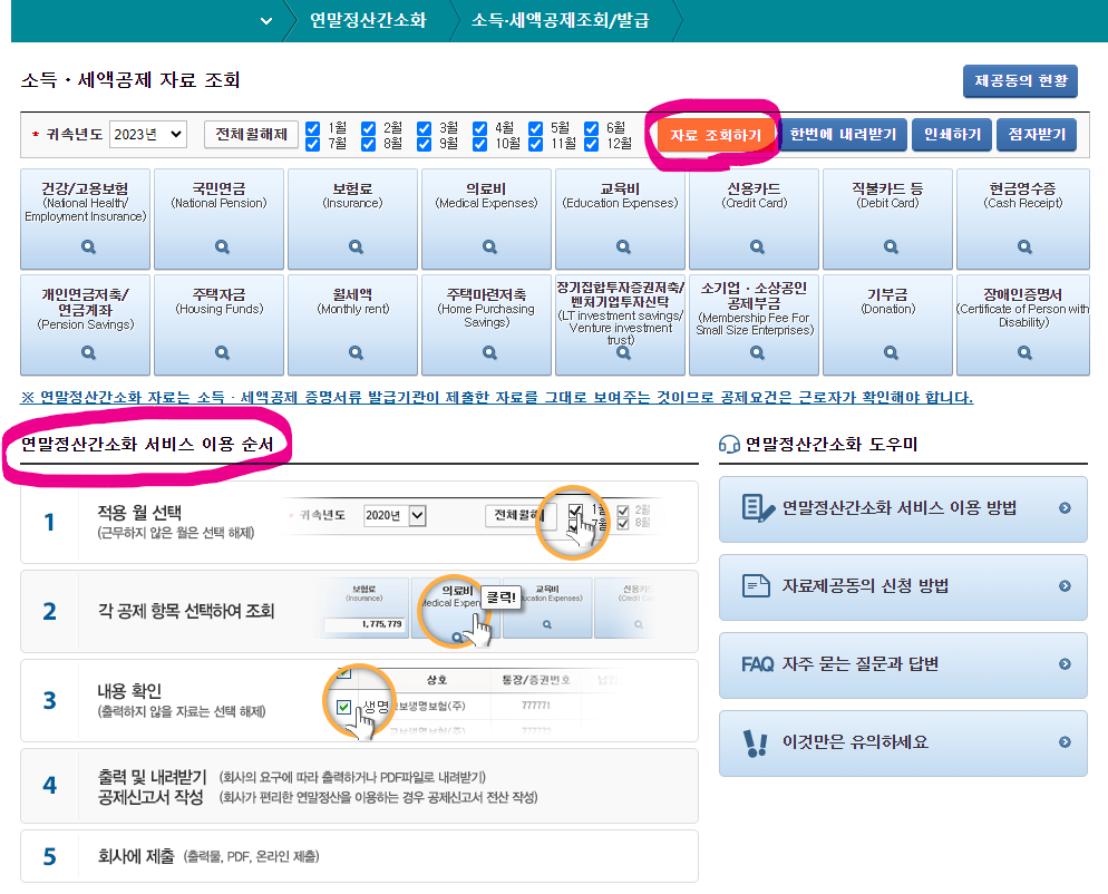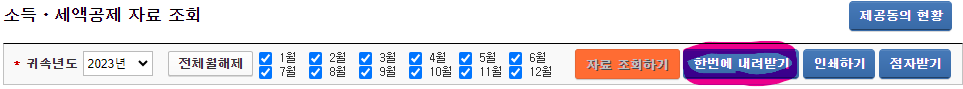 일일이 다 클릭할 필요없이 자료조회하기 를 누르면 모든 내역이 자동으로 나와요