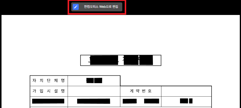 상단에 보면 한컴오피스 Web으로 편집이라는 버튼이 있어요 클릭!