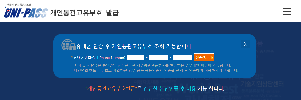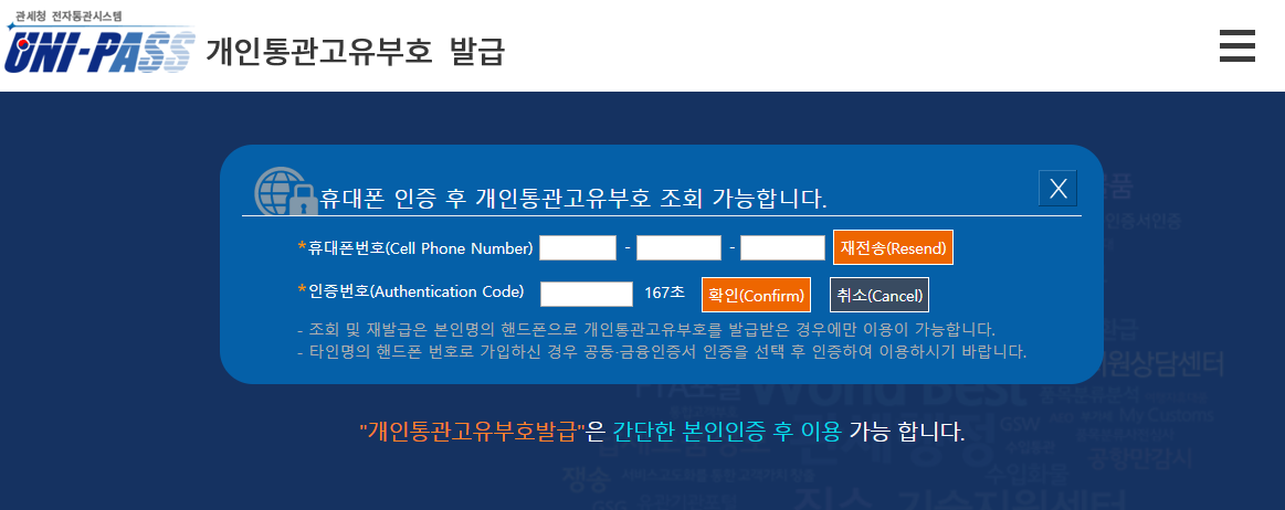 네이버에서 개인고유통관번호를 검색하거나 관세청을 검색해서