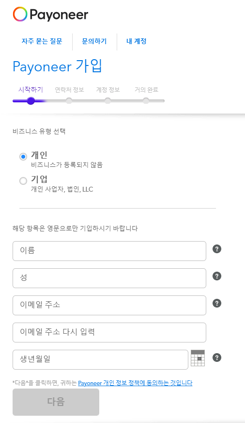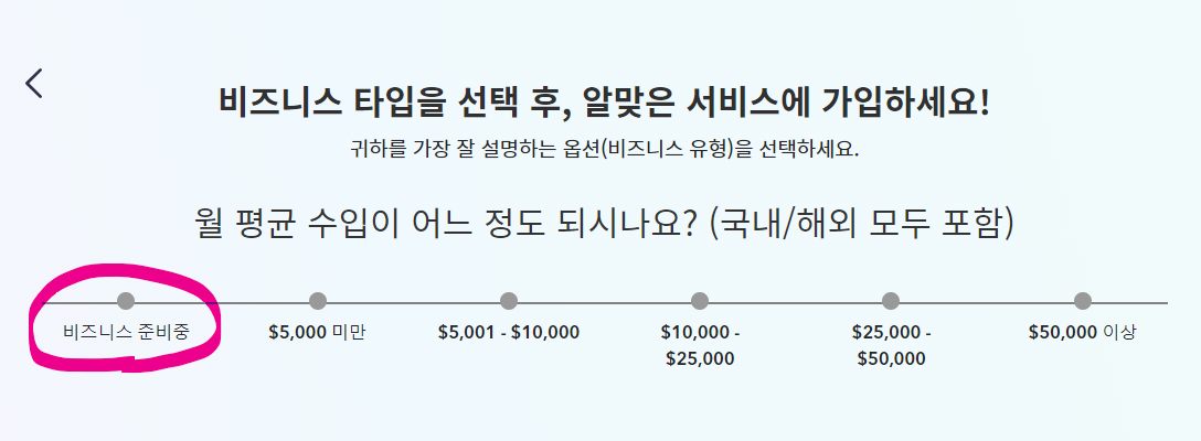 비즈니스유형은 회사가 아니면 개인으로 하시고