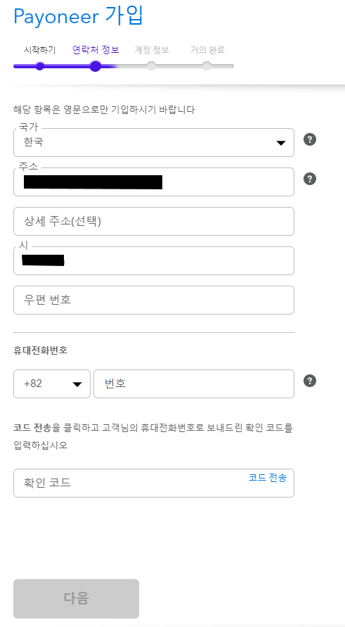 주소는 영문으로 입력해야 하니