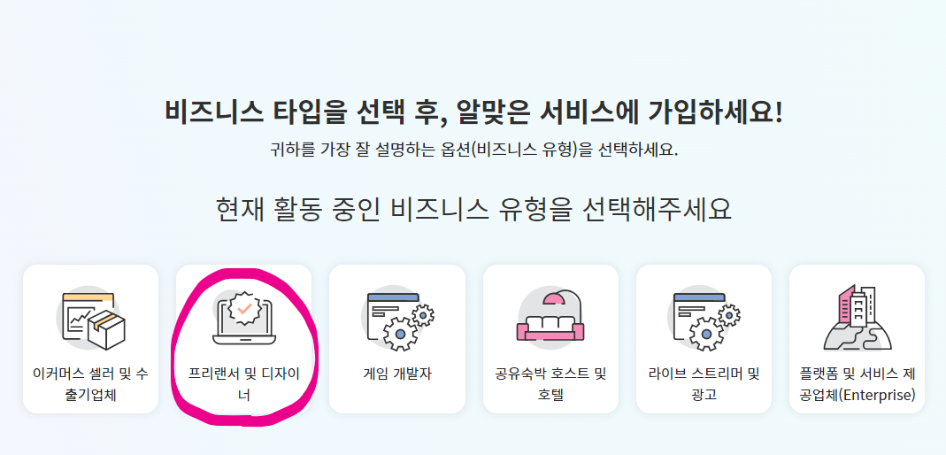 아래와 같이 비즈니스 타입을 선택하라고 나와요