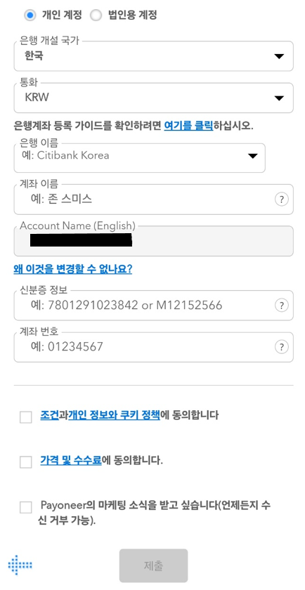 은행 정보를 기입하고 동의 후 제출 클릭!