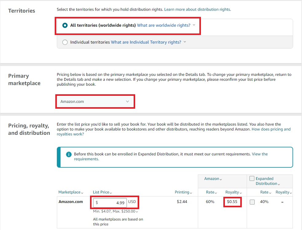 저는 4.99 입력하니 한권 판매되면 Royalty 0.55달러 정도네요.
