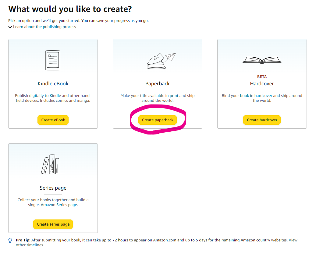 마지막으로 Publish Your Paperback Book을 선택해요.