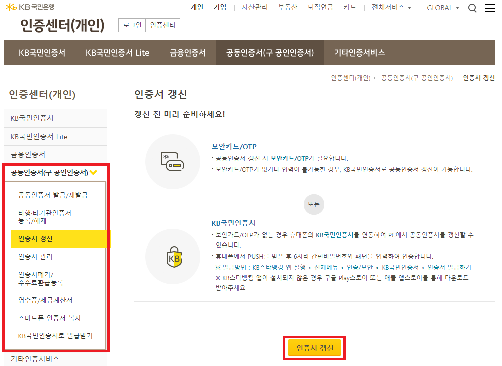 국민은행 기준으로 인증서 갱신방법을 공유할께요.