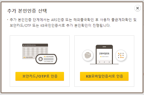 동의하면 추가 본인인증을 선택하라고 나와요.