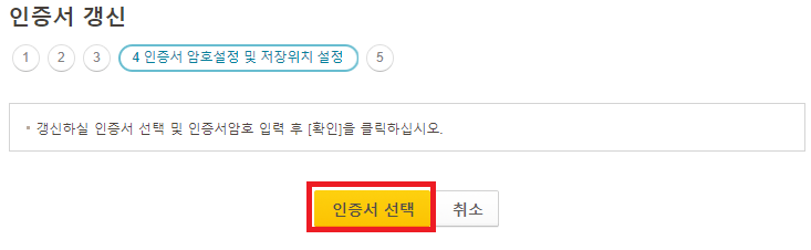 갱신할 인증서 선택 후 새로운 암호를 입력