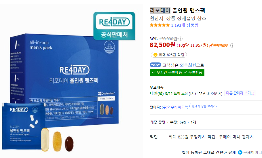 쿠팡사진에 보시면 리포데이 공식 판매처라는 것이 제 눈이 띄었어요.