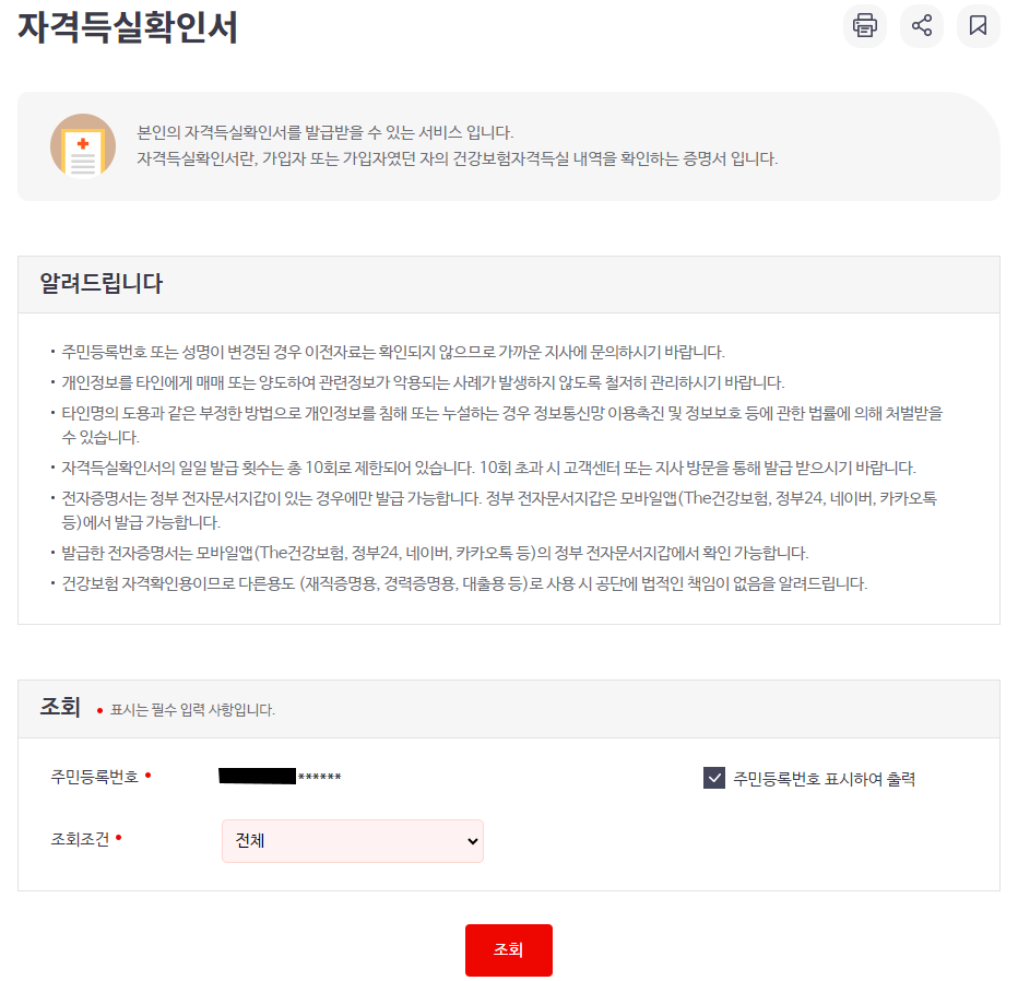 건강보험자격득실 확인서 인터넷 발급 방법
