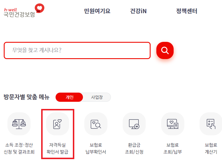 먼저 국민건강보험 싸이트를 접속해요
