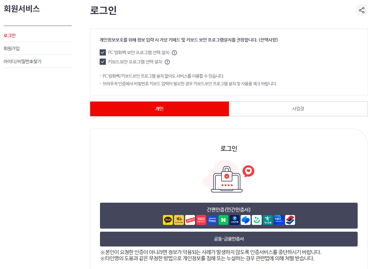 본인에게 맞는 것으로 로그인 진행 고고!!