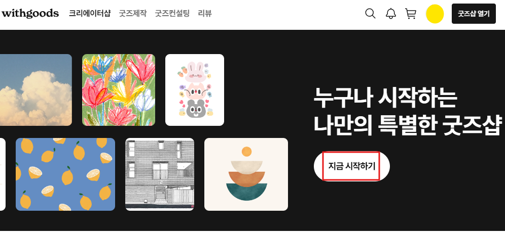 나의 디자인을 아트굿즈로 쉽고, 간편하게 만들고 판매할 수 있는 곳. 나만을 위한 아트굿즈 마켓플레이스 위드굿즈.