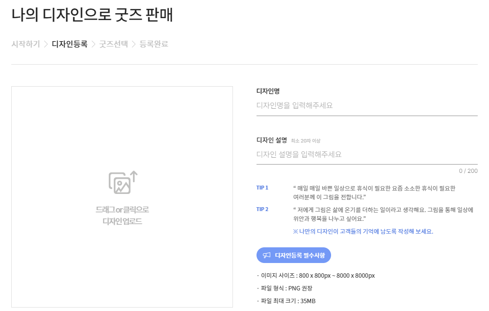 위드굿즈라는 사이트인데 우리는 이미지만 업로드하면 끝이에요