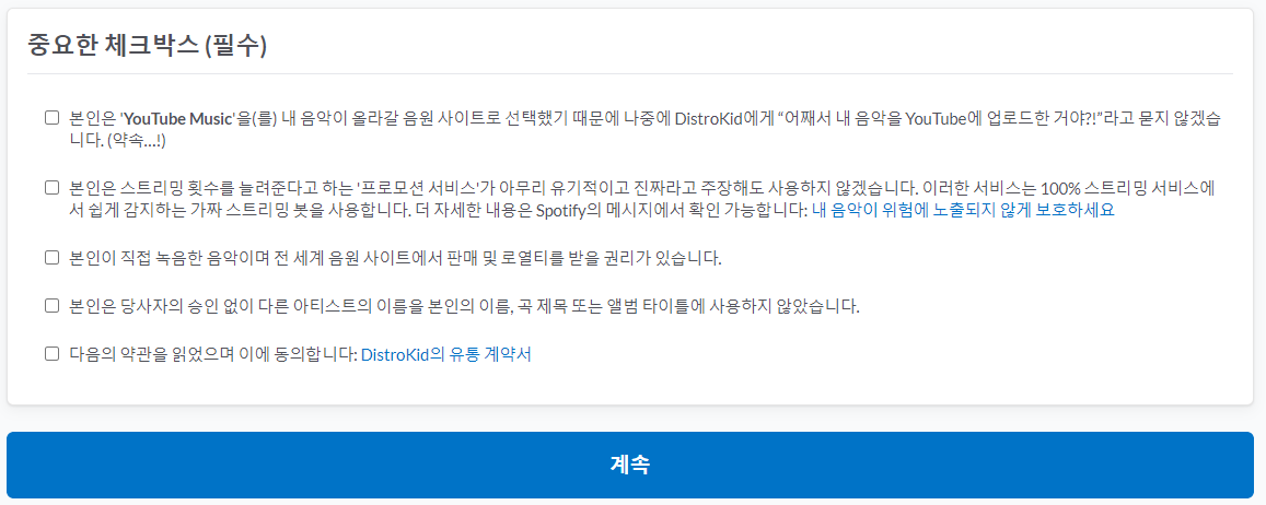 디스트로키드에 등록하면 통합으로 음원을 배포해 주더라구요
