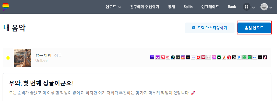Ai 또는 내가 직접 만든 음악을 배포하여 수익을 얻으면 좋겠죠?