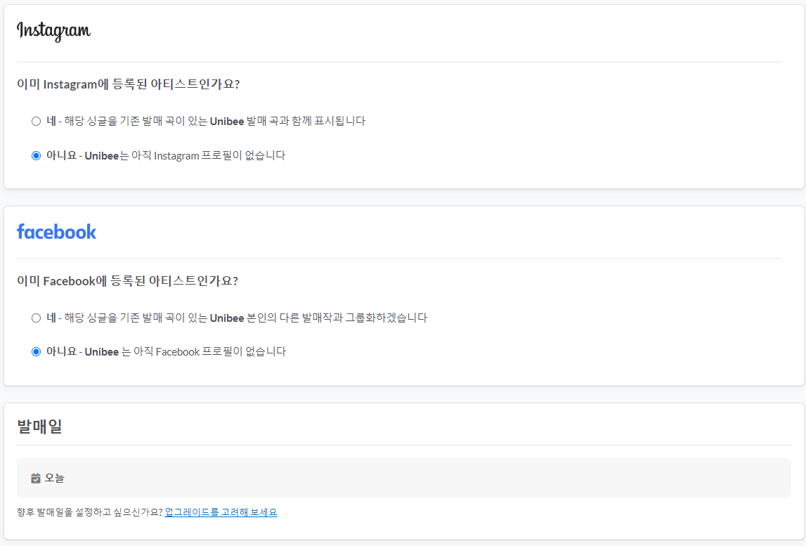 곡은 일단 하나 기존에 발매한 적없으니 아니오 선택!