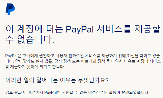 다시 로그인하고 보니 페이팔을 사용할 수 없다는 문제가 생겼고