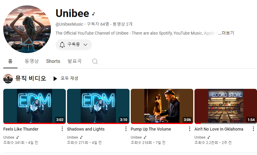 Unibee 채널에 방문하시면 제가 발매한 모든 곡을 무료로 들을 수 있어요.