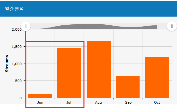 월간 분석을 확인해 봤을 때 6월과 7월달 수입이 이제 정산된 거 같아요.
