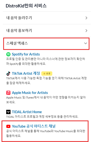 발매를 완료한 뒤 스페셜 액세스 메뉴에 YouTube 공식 아티스트 채널에 접속하면