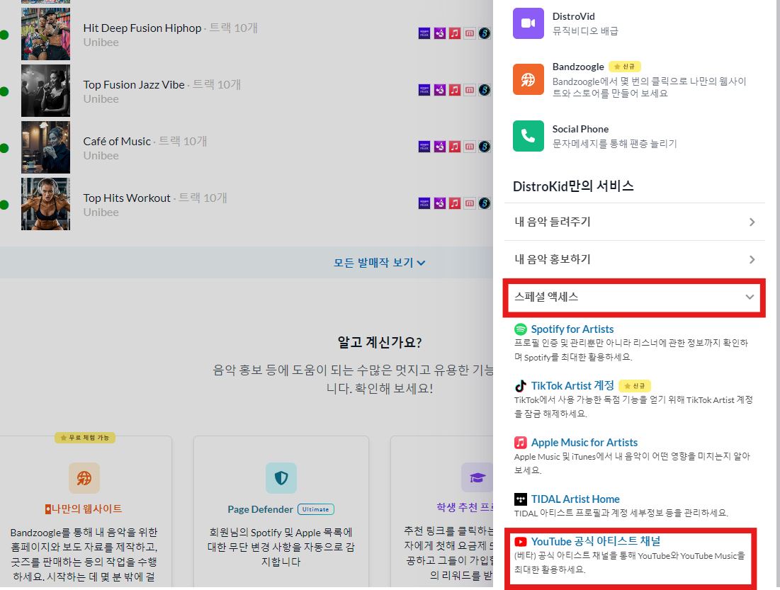 디스트로키드(Distrokid) 유튜브 공식 아티스트 채널 아티스트 안 나올 때