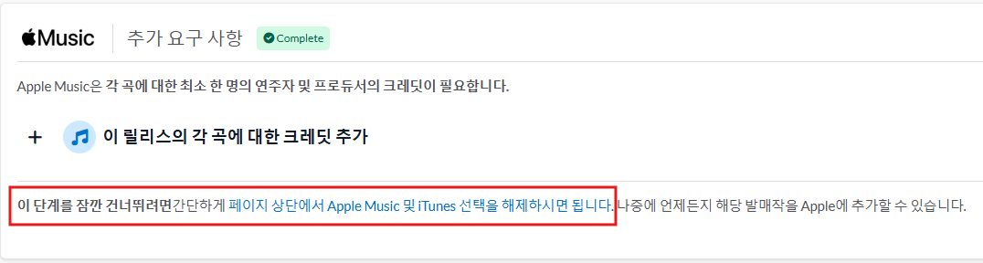 그러면 애플뮤직과 아이튠스에는 제 곡이 발매가 안되는 거에요.