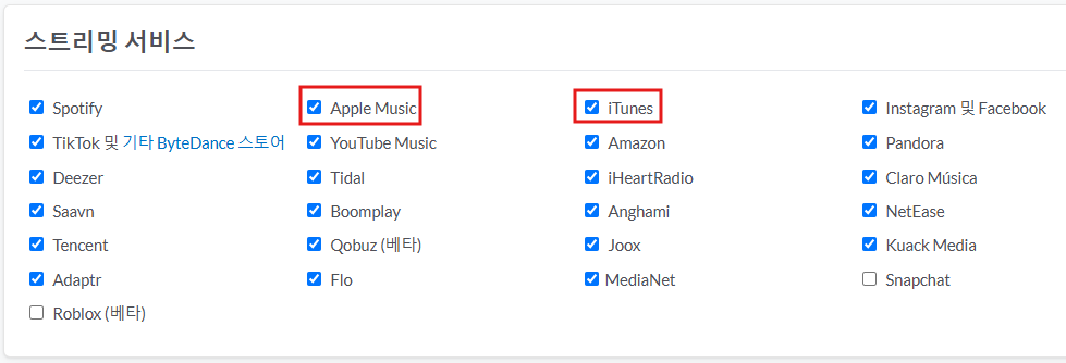 애플뮤직과 아이튠스를 스트리밍 서비스에서 선택 해제하라뉘....