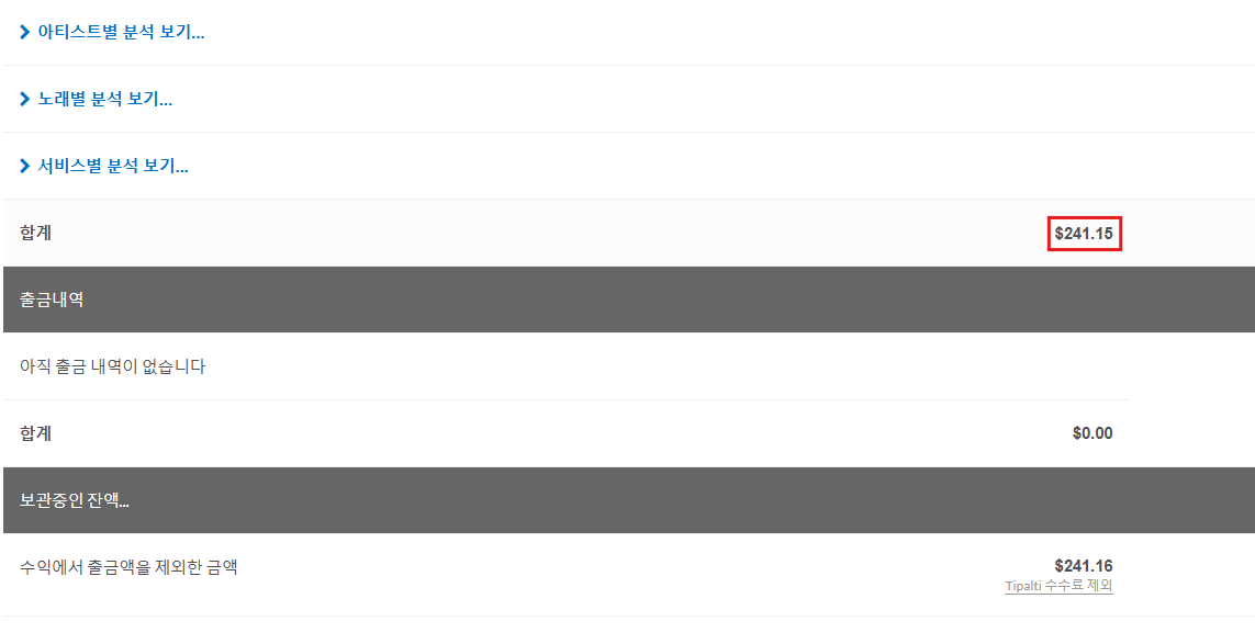 현재 총 수익은 $241.15 달러에요 조금 더 열심히 하면 $300불 넘겠죠?