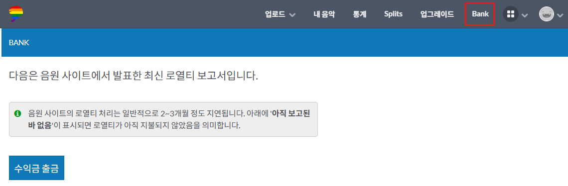 수익금은 디스트로키드 Bank 메뉴에 들어가면 볼 수 있어요.